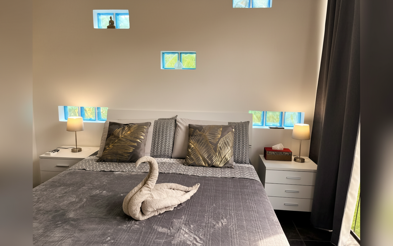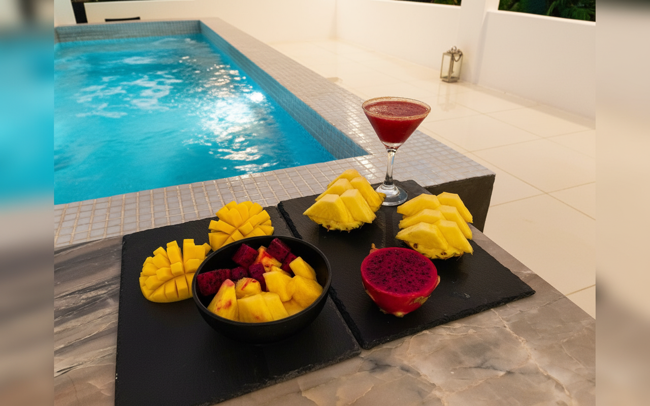 Villa composta da tre camere matrimoniali, quattro bagni, ampi spazi interni e due uffici dedicati, perfetti anche per chi desidera lavorare durante il soggiorno. All’esterno, la terrazza panoramica, la piscina e la vasca idromassaggio creano un ambiente unico, ideale per rilassarsi e vivere appieno l’esperienza tropicale. La villa può ospitare fino a 6 persone garantendo comfort, privacy e servizi di alto livello.